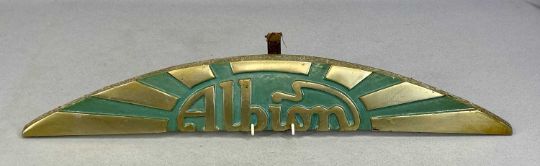 VINTAGE ALBION LORRY RADIATOR BADGE, aluminium with brass and painted finish, 9 (h) x 59.5cms (w)Provenance: deceased estate Ynys Môn