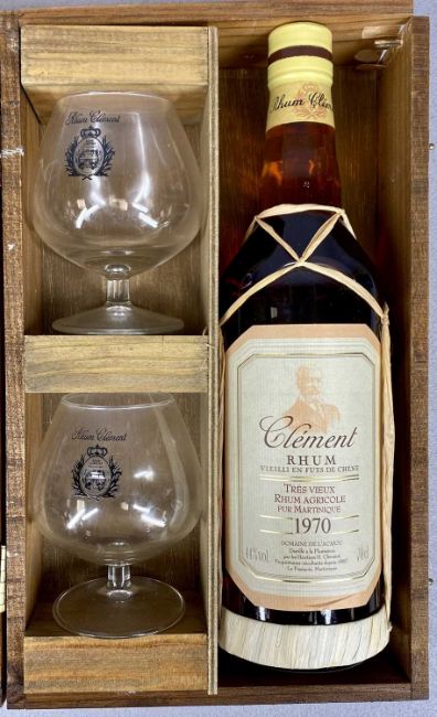 CLEMENT RHUM 1970, 70cl 44% vol., in wooden presentation box with two glassesProvenance: private collection Conwy