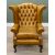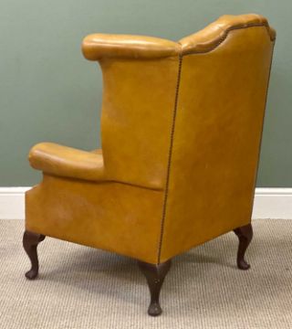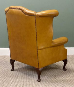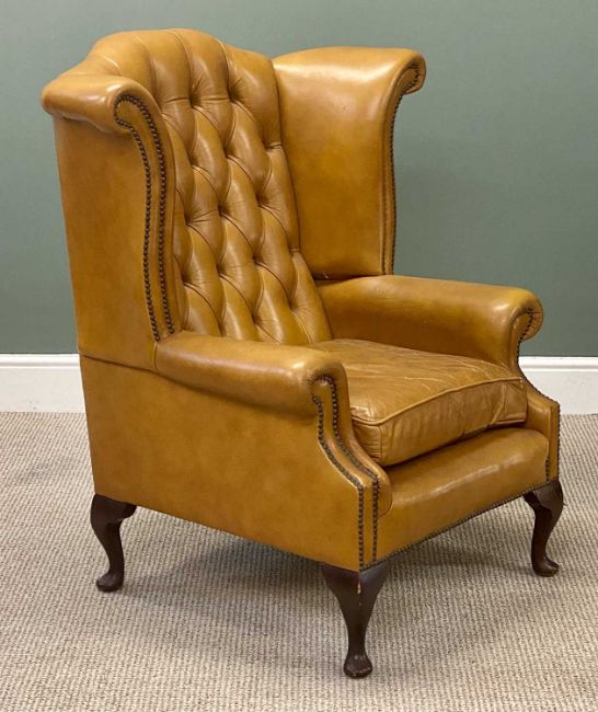 VINTAGE LEATHER-EFFECT BUTTON & WING BACK ARMCHAIR, in tan colour, 109 (h) x 96 (w) x 50cms (d)Provenance: deceased estate Ynys Môn