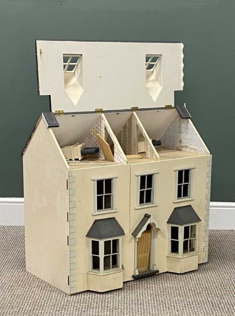 GOOD VINTAGE DOLL'S HOUSE with some contents, 73 (h) x 77 (w) x 49cms (d)Provenance: deceased estate Ynys Môn