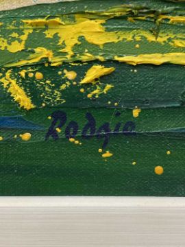 ‡ LYNN RODGIE (Scottish, b. 1967) oil on canvas - entitled verso 'Waiting to Sail II', signed lower right, 40cms²Provenance: private collection ConwyComments: framed