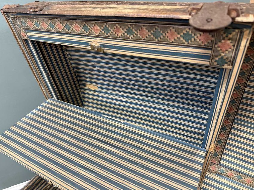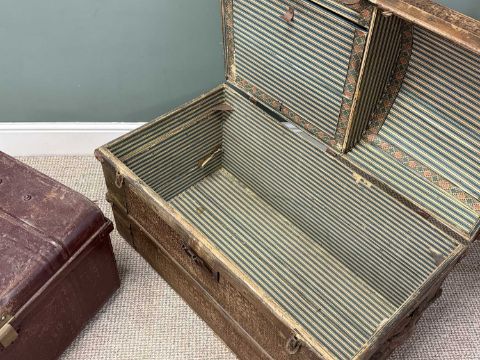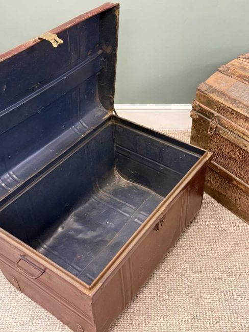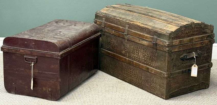 VINTAGE TOME-TOP TRUNK, 58 (h) x 93 (w) x 51cms (d); and a tin trunk, 46 (h) x 73 (w) x 49cms (d)Provenance: private collection Conwy