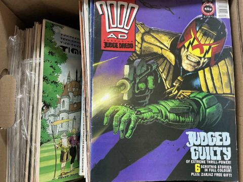 COMIC BOOK CLUB HOUSE: LARGE COLLECTION OF 2000 AD, 2000 AD JUDGE DREDD & 2000 AD PRESENTS: CRISIS COMICS, to include 2000 AD Presents: Crisis issues 1-34, between 1988-90; Batman / Judge Dredd, Book 1 of 2 and 2 of 2; approx. 40 issues of Judge Dredd The Megazine, including No. 1-15, Oct '90-Dec '91, etc.; and approx. 700 2000 AD weekly editions (approx. 12 boxes)Provenance: private collection CardiffComments: all appear to be in very good condition, some with curled corners, some retained in plastic sleeves, majority of editions from 600-1590 *No condition report available on this lot, Spread sheet in photographs refers to additions listed by vendor - however not verified*