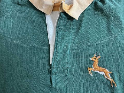 RUGBY UNION CLUB HOUSE: 1951 SPRINGBOKS JERSEY WORN BY LEGENDARY PROP CHRIS KOCH (1927-1986) DURING THE SOUTH AFRICAN TOUR OF THE UK, IRELAND AND FRANCE, green jersey with Springbok logo on the left breast, no number to back.Chris Koch became the cornerstone of the South African pack during the post-WW2 era when they were recognised as the unofficial champions of the world. He won the first of his 22 caps (1949-60) against New Zealand at the age of 21 and helped the Springboks win the home series against the All Blacks. On the 1951 Springboks Grand Slam tour he played in the wins over Scotland (44-0), Ireland (17-5), Wales (6-3), England (8-3) and France (15-3). That side won 30 of its 31 matches, losing only to London Counties. A tight head prop of considerable size and power, Koch won his first nine Tests in a Springbok jersey and helped them to share the series against the 1955 British & Irish Lions 2-2. The jersey is believed to have been swapped with Hawick’s Hugh McLeod after the Springboks had beaten the South of Scotland XV 13-3 at Hawick’s Mansfield Park on Saturday 19 January 1952. Koch toured Australia and New Zealand in 1956, helping his side to win the Tests series 2-0 against the Wallabies but losing 3-1 to the All Blacks. He ended on a high with two appearances in the three match Test series triumph at home over New Zealand in 1960.Provenance: Hawick Rugby Football ClubComments: some fading, some small pin holes, marks to front of chest, otherwise good