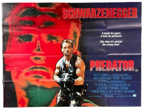 CINEMA CLUB HOUSE: PREDATOR (1987) UK cinema film poster, starring Arnold Schwarzenegger, one of best action movies of the 80s, Predator was Oscar nominated for the special effects and started an ongoing horror franchise that continues strong to this day, folded as issued, standard UK quad size, 30 x 40 inchesProvenance: private collection CardiffComments: unrestored, folded with slight line wear, no pin holes, no edge wear, titled in pencil on reverse which does not show through, a fine example