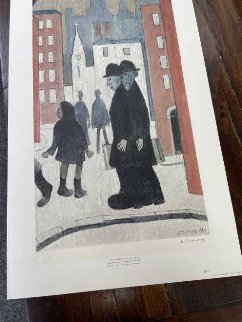 ‡ LAURENCE STEPHEN LOWRY RBA RA (1887-1976) limited edition (363/850) lithograph - Two Brothers, Fine Art Trade Guild blindstamp, printed by Max Jaffe, Vienna, published by Adam Collection Ltd, 1972, numbered, signed in pencil, 72 x 40cmsProvenance: private collection FlintshireComments: unframed, upper margin three area of adhesive discolouration Condition Report:Tape residue to the top edge which has torn the paper.There is a scratch (the white line on the gentleman’s coat, its about eight inches)There are also three or four liquid drip marksThe three blindstamp letters are FHC
