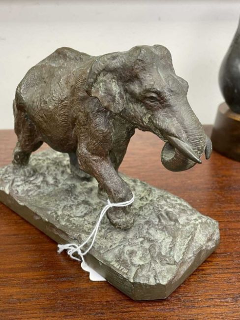 ‡ CHRISTOPHE FRATIN (French, 1801-1864) bronze - Asian Elephant Walking, on rectangular plinth, impressed signature (letter N upside down), 12 (h) x 17.5 (l) x 7.5cms (w)Provenance: private collection Gwynedd