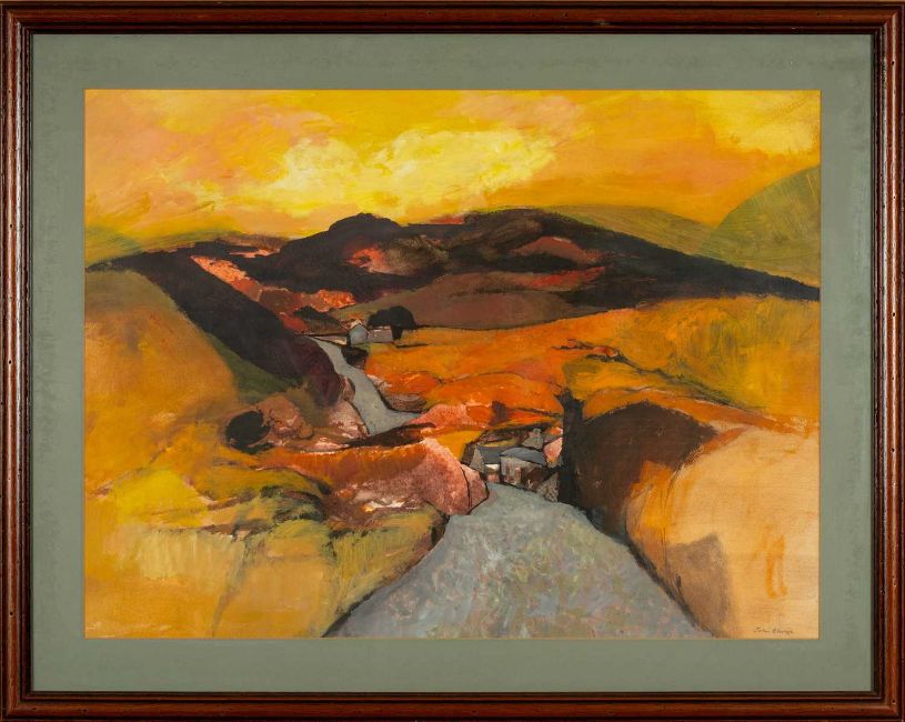 ‡ JOHN ELWYN (Welsh 1916-1997) acrylic on paper - entitled verso 'Welsh Landscape', signed, 52 x 70cmsProvenance: private collection YorkshireComments: framed, glazedFree Home Delivery: free insured delivery to your address available for all lots in Welsh Sale Part I where the invoice is £4000 or more. England and Wales only (excluding Channel Isles and Isle of Wight). Please enquire for further details.