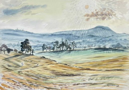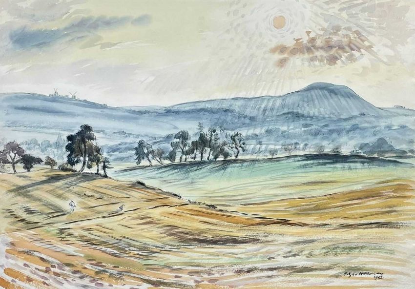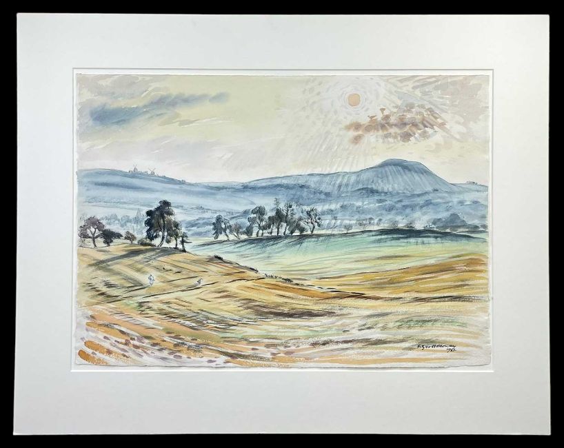 EDGAR HOLLOWAY watercolour - view of South Downs (Sussex), signed and dated 1982, 40 x 56cmsProvenance: no droite de suite, consigned via our Mid-Wales officeComments: unframed, mounted