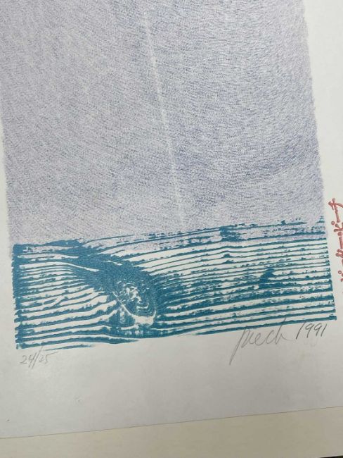 ‡ PAUL PETER PIECH (American, lived / worked Wales, 1920-1996) limited edition (24/25) woodcut print - quote from Japanese poet Bokusui Wakayama entitled, 'How Forlorn is the White Bird!', signed and dated 1991, 64 x 45cmsProvenance: private collection SuffolkComments: unframed, mounted on board