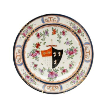 SAMPSON PSEUDO-CHINESE ARMORIAL PLATE, polychrome enamel central crest surrounded with floral sprays, 31cms (diam.)Provenance: private collection Cheshire