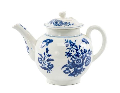 WORCESTER BLUE & WHITE TEAPOT & COVER, in the butterfly pattern c. 1780, open crescent mark, 16cms (h)Provenance: private collection Flintshire