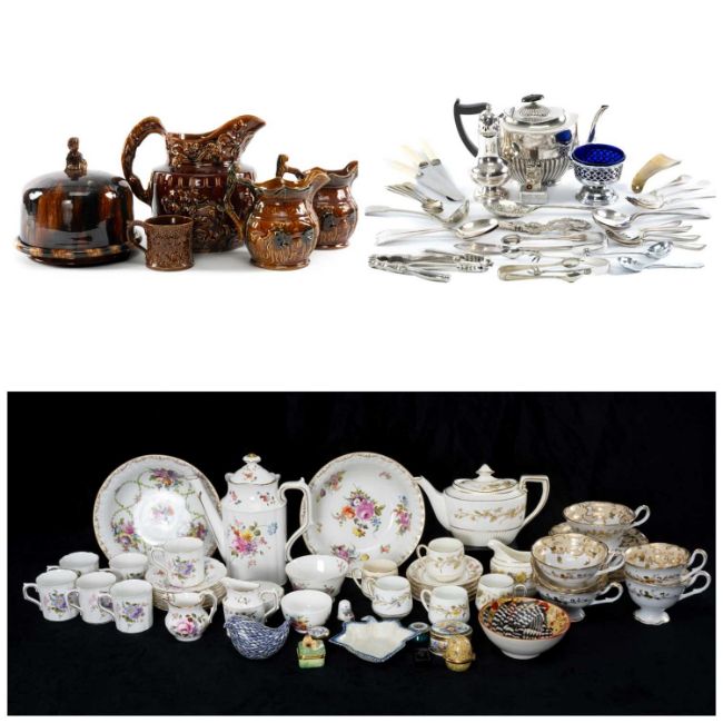 CHARITY LOT IN SUPPORT OF WALES AIR AMBULANCE to include assorted china teaware, loose silver plated cutlery and selection of Victorian treacle glazed pottery Provenance: items generously donated by our vendorsComments: full proceeds to benefit Wales Air Ambulance