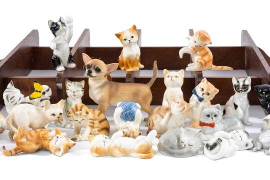 DANBURY MINT COLLECTION OF MINIATURE FIGURES 'CATS OF CHARACTER', with wooden wall rackProvenance: private collection Cheshire