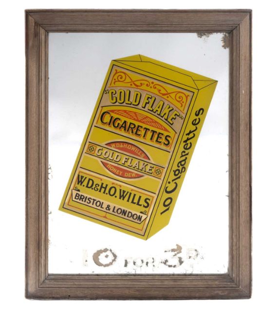 VINTAGE ADVERTISING MIRROR 'GOLD FLAKE CIGARETTES', W.D. & H.O. Wills, Bristol & London, 10 4 3d, 49 x 36.5cms, in stained wooden frameProvenance: private collection Flintshire