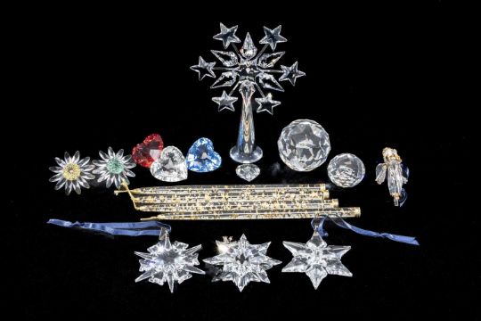 SWAROVSKI CRYSTAL CHRISTMAS ORNAMENTS, including angel, and other Swarovski crystal ornaments including crystal hearts, paperweight, etc. (12)Provenance: deceased estate Wirral