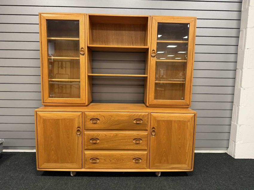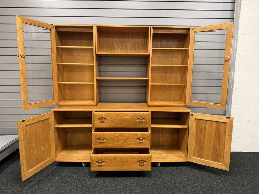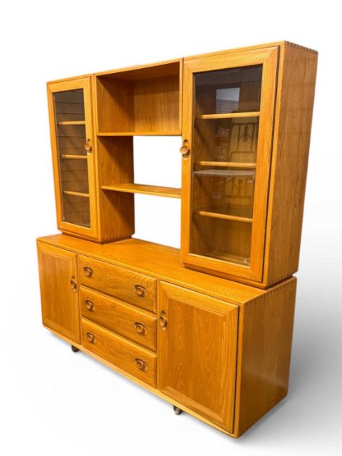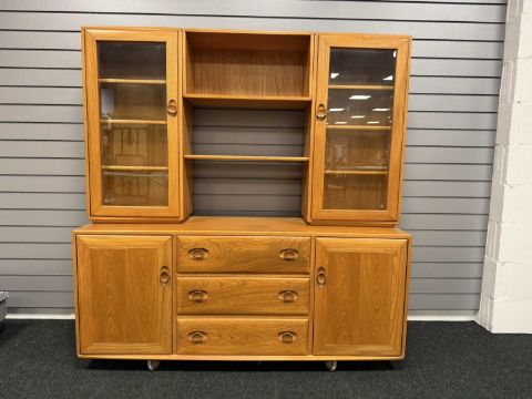 ERCOL BLONDE ELM DISPLAY SIDEBOARD, 162 (h) x 156 (w) x 44cms (d)Provenance: deceased estate Wirral