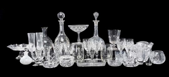COLLECTION OF MIXED GLASSWARE, including Victorian bucket bowl rummer, 16cms, modern cut wine and scotch glasses, decanters, etc. (qty)Provenance: private collection Cheshire