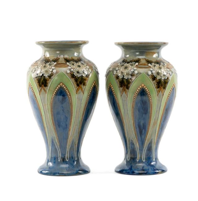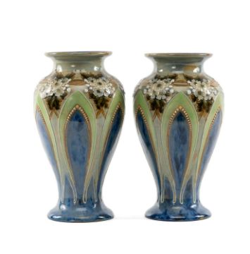 PAIR OF ROYAL DOULTON STONEWARE VASES by Eliza Simmance, 28cms (h) Provenance: private collection Flintshire