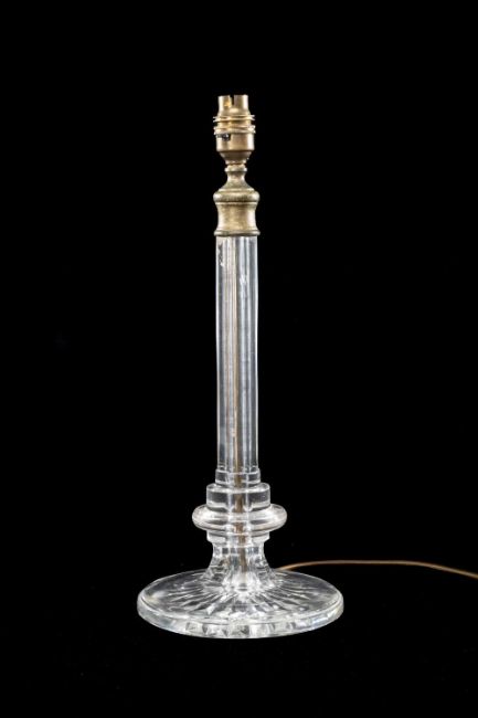 VINTAGE CRYSTAL TABLE LAMP with octagonal column and circular star-cut base, gilded brass fittings, 42cms (h) overallProvenance: private collection Merseyside