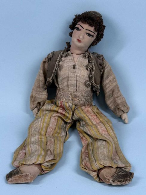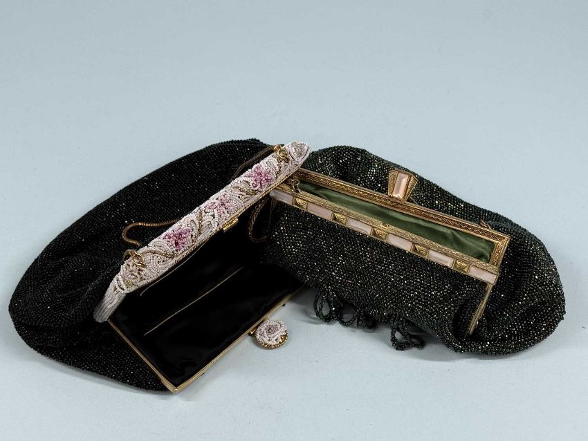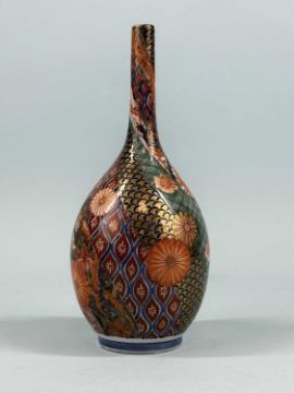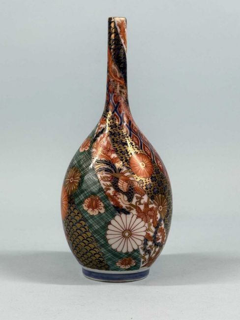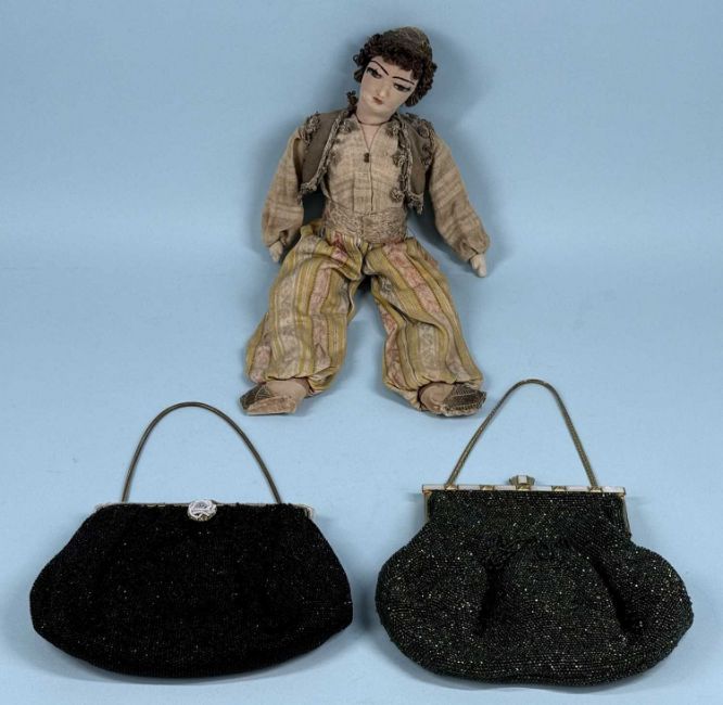 ASSORTED COLLECTABLES, comprising vintage Indian cloth doll in traditional costume, 37cms (h); two vintage bead work ladies' evening bags; Japanese cloisonné baluster vase, green ground, decorated with blossom, 23cms (h); and Japanese Meiji period Imari bottle vase, decorated with chrysanthemums, base signed, 24cms (h) (5)Provenance: private collection Merseyside