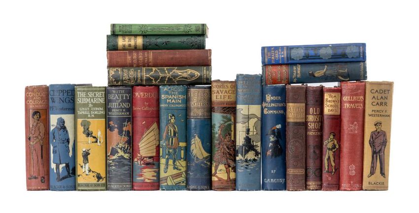 BLACKIE & SON PUBLISHERS, ROUTLEDGE & OTHER BOOKS, including Jules Verne 'From the Earth to the Moon', Edith King-Hall 'Adventures in Toyland', and F. Whymper 'The Sea' (4 boxes)Provenance: private collection Cheshire