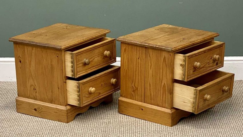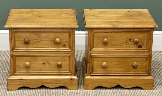 MODERN PINE PAIR OF BEDSIDE CHESTS having two drawers, 45 (h) x 46 (w) x 37cms (d)Provenance: private collection Conwy