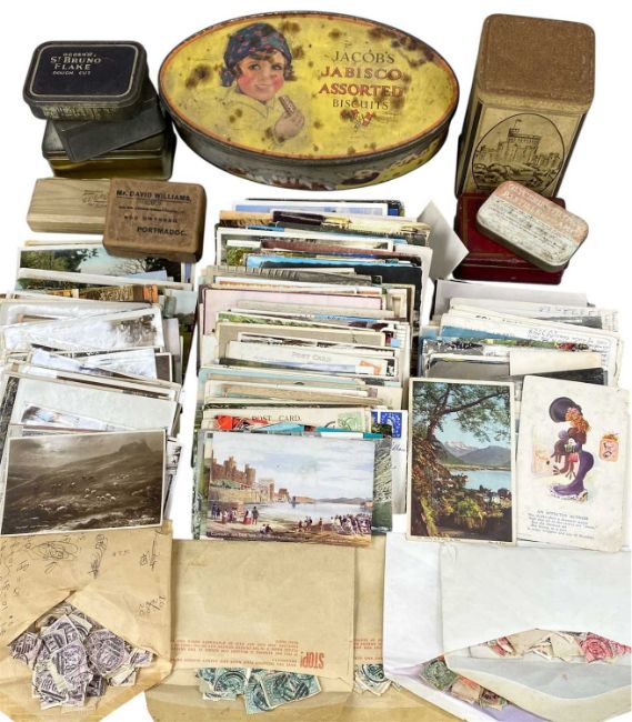 COLLECTION OF ANTIQUE, VINTAGE & LATER POSTCARDS, vintage tins, etc.Provenance: deceased estate Conwy