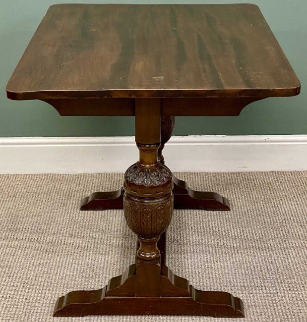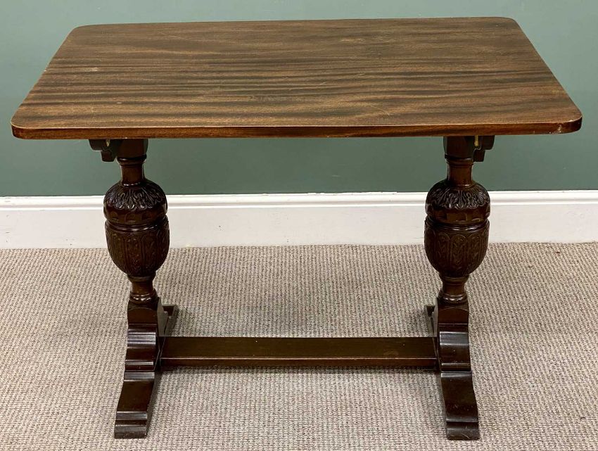 AN EDWARDIAN REFECTORY STYLE TEA TABLE, on pineapple type supports, 75 (h) x 104 (w) x 75cms (d)Provenance: private collection Conwy