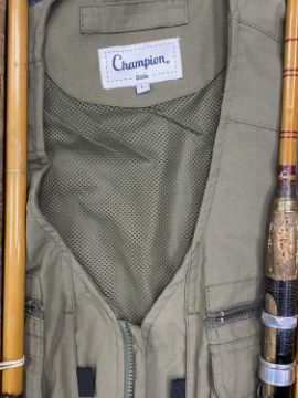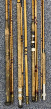 VARIOUS VINTAGE SPLIT CANE & BAMBOO FISHING RODS, and a fishing vest