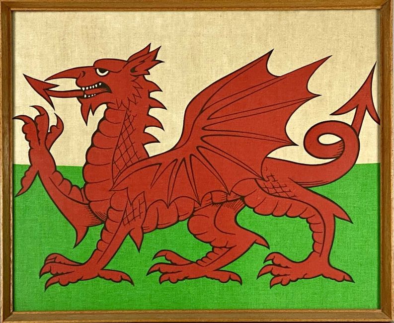 PRINTED COTTON WELSH FLAG (Y DDRAIG GOCH), 44 x 54cmsProvenance: private collection GwyneddComments: framed and glazed