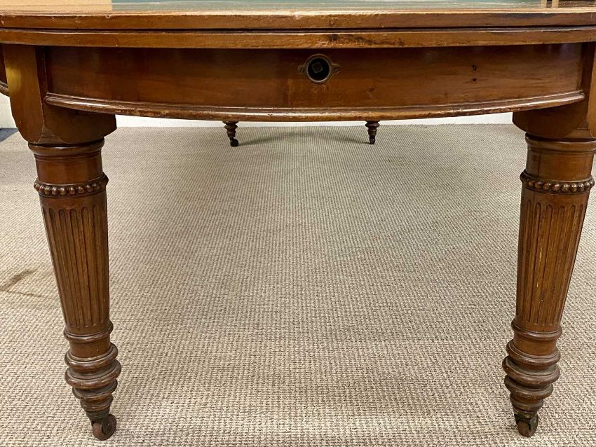 FINE VICTORIAN MAHOGANY WIND-OUT DINING TABLE, with four leaves, and on turned Corinthean tapered legs and castors, (bearing a label for Waring and Gillow), 73 (h) x 300/122 (w) x 122cms (d)Provenance: private collection Gwynedd