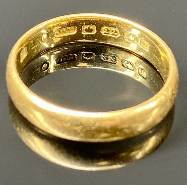 22CT GOLD WEDDING BAND, size Q, 5.8gProvenance: deceased estate Conwy