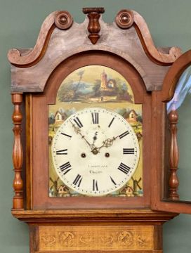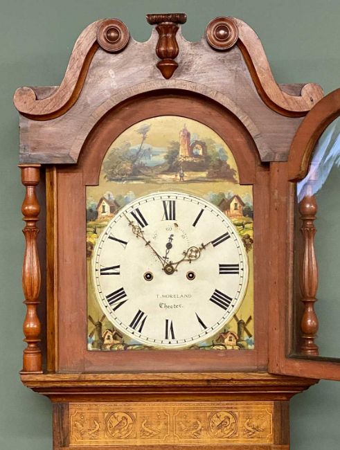 T. MORELAND OF CHESTER VICTORIAN LONGCASE CLOCK, mahogany case with fine inlaid detail, painted dial, with 8-day movement (no pendulum or weights), 231 (h) x 60 (w) x 24cms (d)Provenance: private collection Conwy