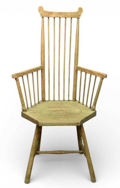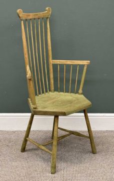LIBERTY & CO. 'QUAINT FURNITURE RANGE' STICK-BACK ELBOW CHAIR, with a hexagonal seat, 110 (h) x 63 (w) x 43cms (d)Provenance: private collection Conwy