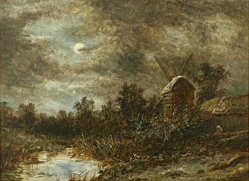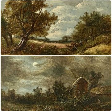 LATE 19TH CENTURY BRITISH SCHOOL pair of oils on canvas - view of a windmill with figure in foreground, and landscape with cattle and figure, both monogrammed, 26 x 36cms (2)Provenance: private collection GwyneddComments: framed and glazed
