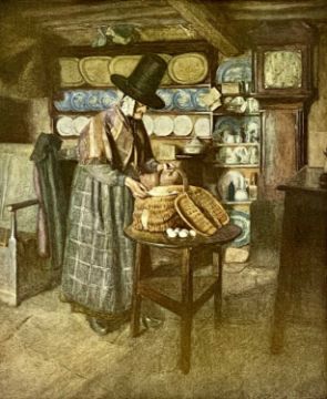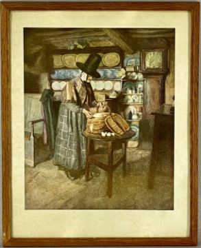SYDNEY CURNOW VOSPER (1866-1942) two colour prints - 'Salem', 20 x 20cms, and 'Market Day in Wales', 25 x 20.5cms (2)Auctioneer’s note: Vosper painted 'Salem' while visiting North Wales in 1908. It depicts the interior of Capel Salem in Cefn Cymerau near Llanbedr, built in 1851. He asked people from the local area to sit for him, paying them sixpence per hour. The figures have been identified as (from left to right) Robert Williams (carpenter), Laura Williams (shopkeeper), Siân Owen, William Sion, six-year-old Evan Edward Lloyd, Mary Rowlands and Owen Sion. In 1909 ‘Salem’ was purchased by Lever to use as a promotional print for Sunlight Soap. 'Market Day in Wales' features the same principal sitter, Siân Owen. Rogers Jones & Co sold to the National Library of Wales a second version of the Salem original (Salem II) in 201, a painting which was previously unrecorded.Provenance: deceased estate GwyneddComments: framed and glazed