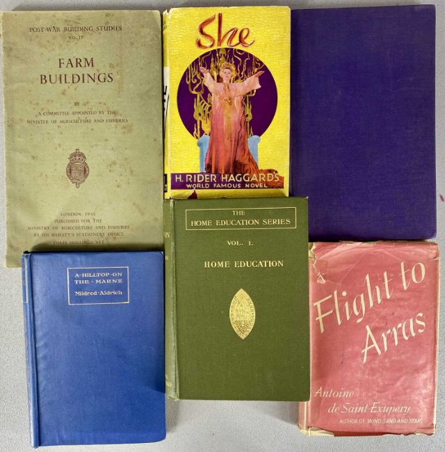 SMALL ASSORTMENT OF BOOKS, including Saint-Exupéry (Antoine De) 'Flight to Arras' 1942; Aldrich (Mildred) 'A Hilltop on the Marne', 1918; Eliot (T.S.) 'Murder in the Cathedral', 1936, etc. (6)Provenance: private collection Denbighshire