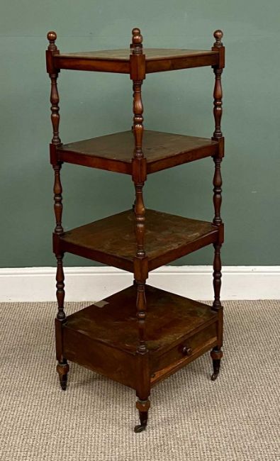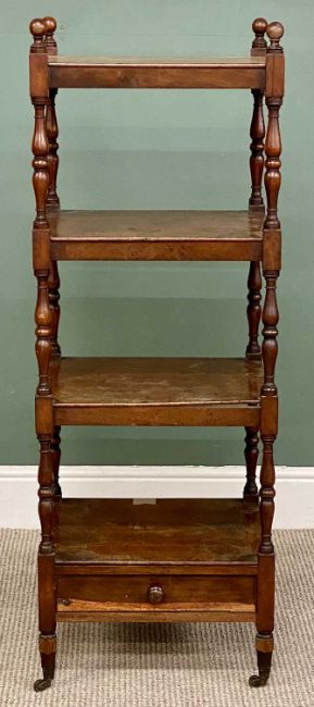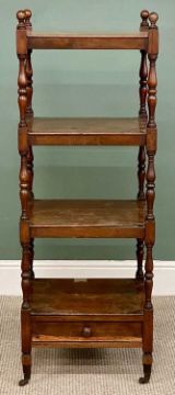 ANTIQUE MAHOGANY TALL FOUR-SHELF WHATNOT with base drawer, 128 (h) x 46 (w) x 40cms (d)Provenance: private collection Gwynedd