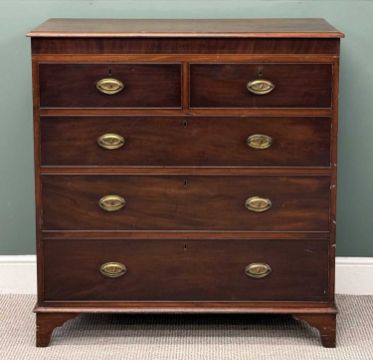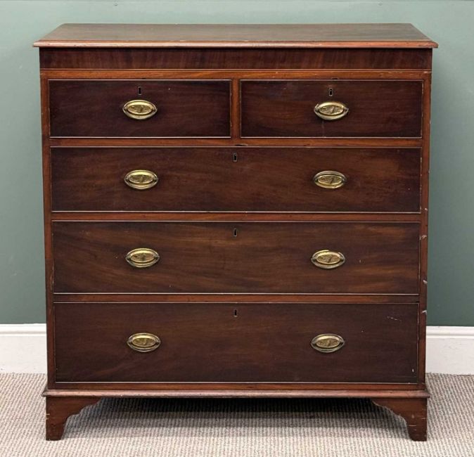 ANTIQUE MAHOGANY CHEST OF DRAWERS with brass swing handles, 115 (h) x 111 (w) x 53cms (d)Provenance: deceased estate Conwy