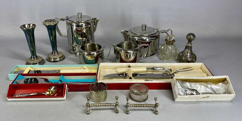 LARGE ASSORTMENT OF SILVER-PLATED CUTLERY, including cased canteen, dessert knives and forks with mother of pearl handles, pair of fish servers, etc.Provenance: deceased estate Conwy