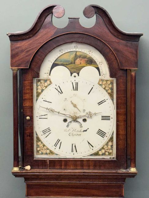 ROB FLETCHER OF CHESTER LONGCASE CLOCK, rolling dial, twin weights and pendulum, 226 (h) x 57 (w) x 25cms (d)Provenance: deceased estate Gwynedd