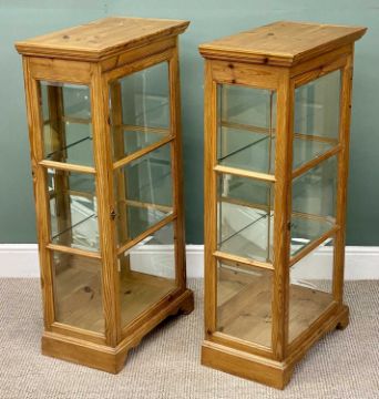 PAIR OF MODERN PINE CABINETS mirrored, with glass doors and interior shelving, 121 (h) x 61 (w) x 35cms (d)Provenance: private collection Conwy