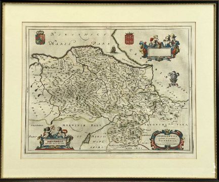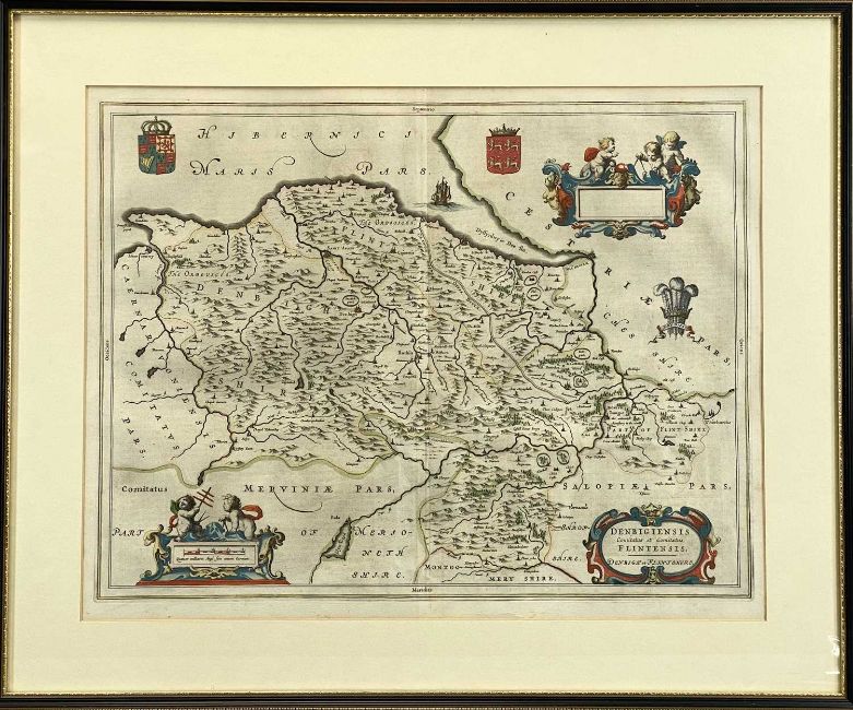 JOAN BLAEU HAND-COLOURED ENGRAVED MAP of Denbighshire and Flintshire, c. 1646, double sided, 41 x 52cmsProvenance: private collection DenbighshireComments: framed and glazed