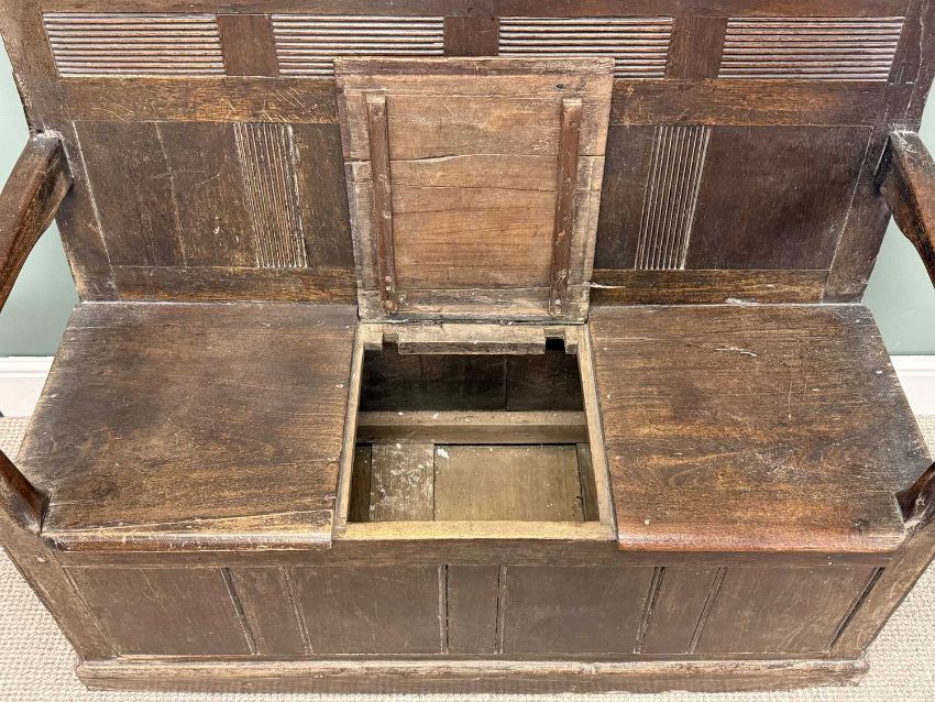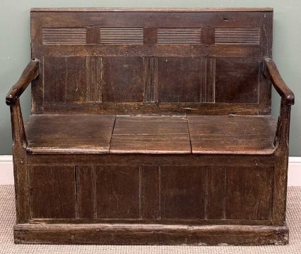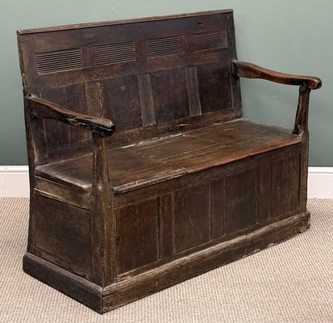 ANTIQUE OAK BOX SEAT BENCH, 93 (h) x 117 (w) x 55cms (d)Provenance: private collection Conwy
