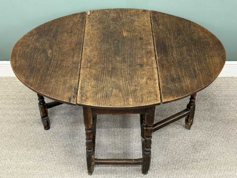 CIRCA 1900 ANTIQUE OAK GATELEG TABLE, on turned and block supports, 69 (h) x 49/130 (w) x 101cms (d)