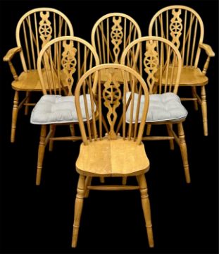 WHEEL & HOOPED BACK DINING/KITCHEN CHAIRS, a set of six (4 + 2), 96 (h) x 54 (w) x 40cms seat depthProvenance: private collection Conwy