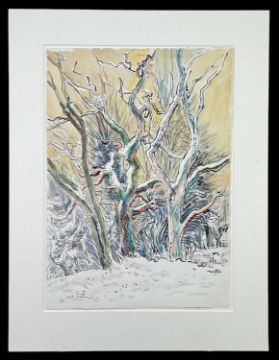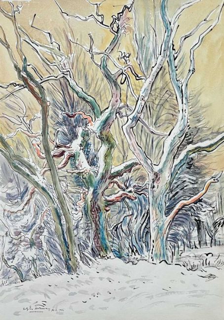 EDGAR HOLLOWAY watercolour and ink - entitled, 'Woodbarton', signed and dated 1986, 57 x 40cmsProvenance: no droite de suite, consigned via our Mid-Wales officeComments: unframed, mounted