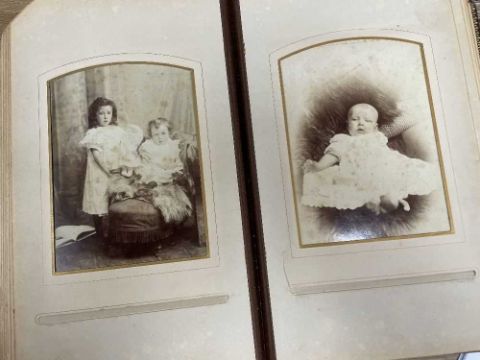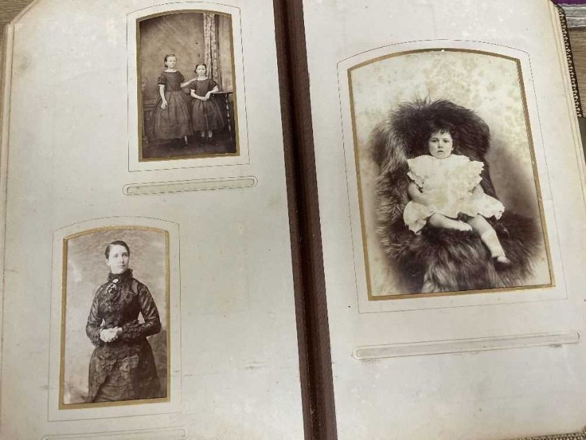 ASSORTED ANDREWS FAMILY PHOTOGRAPHS, PRINTS, ETC including a late Victorian photograph album featuring presumed Andrews family members in period costume including children and infants (half filled)Provenance: John Andrews Charitable Trust
