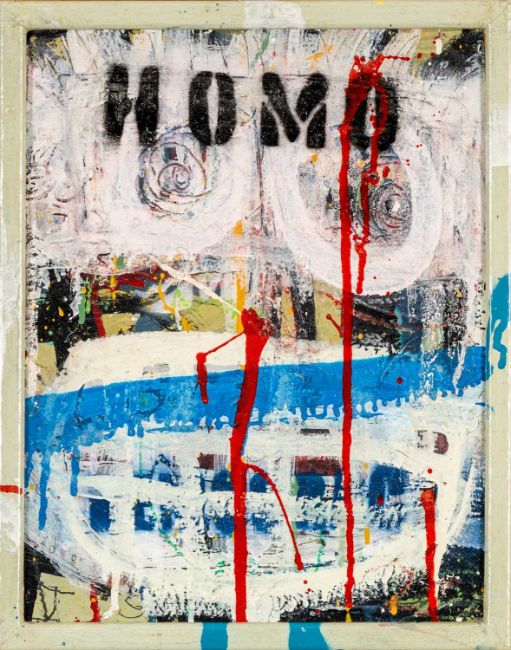 NEALE HOWELLS (b.1965) mixed media on wood panel - entitled verso, 'Christmas for Cowboys', signed and dated verso 2025, 36 x 29cmsProvenance: no ARR, direct from the artist's studio, South WalesComments: wood panel in painted frame